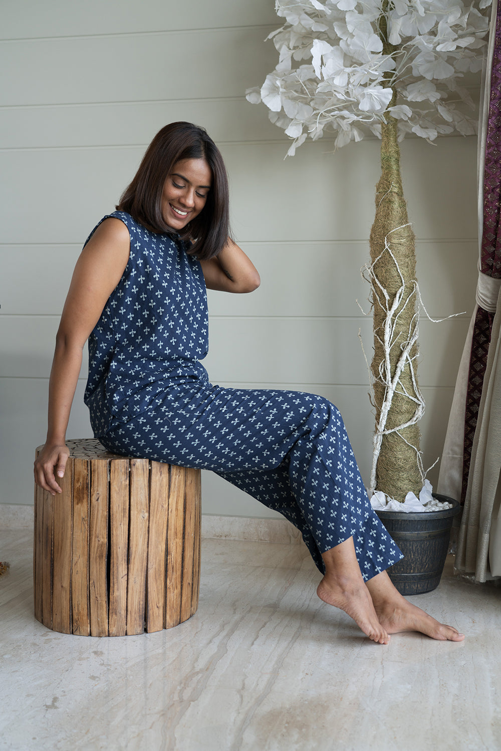 A kali booti printed leisure wear set in the shades of Indigo, to add comfort and style to your everyday living!