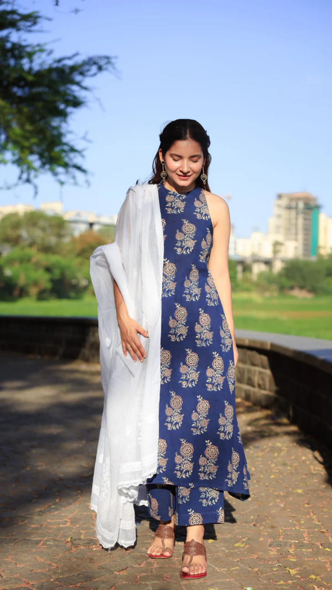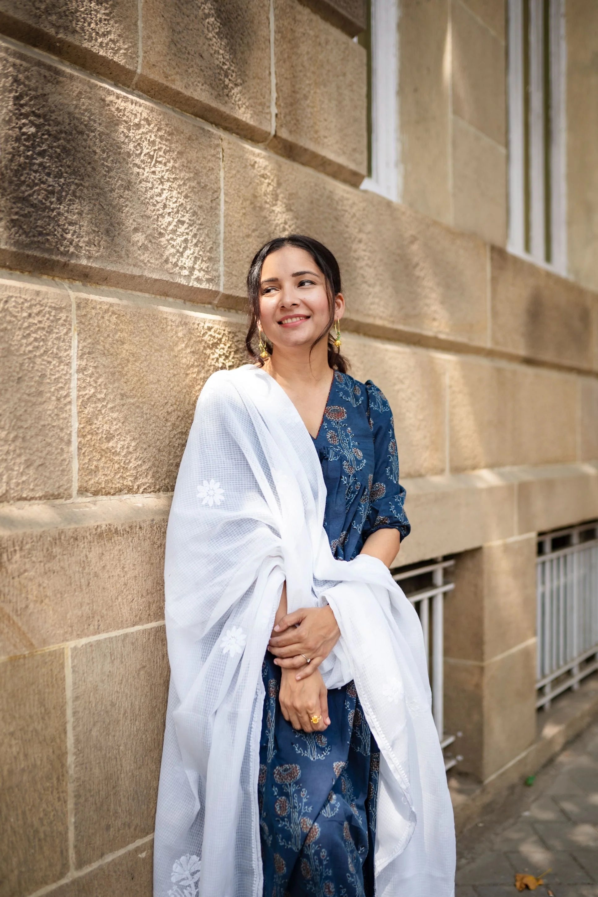 White Chikankari Kota dupatta. The dupatta can be paired with our sets - Gulbagh, Kshana, Sabr Indigo.