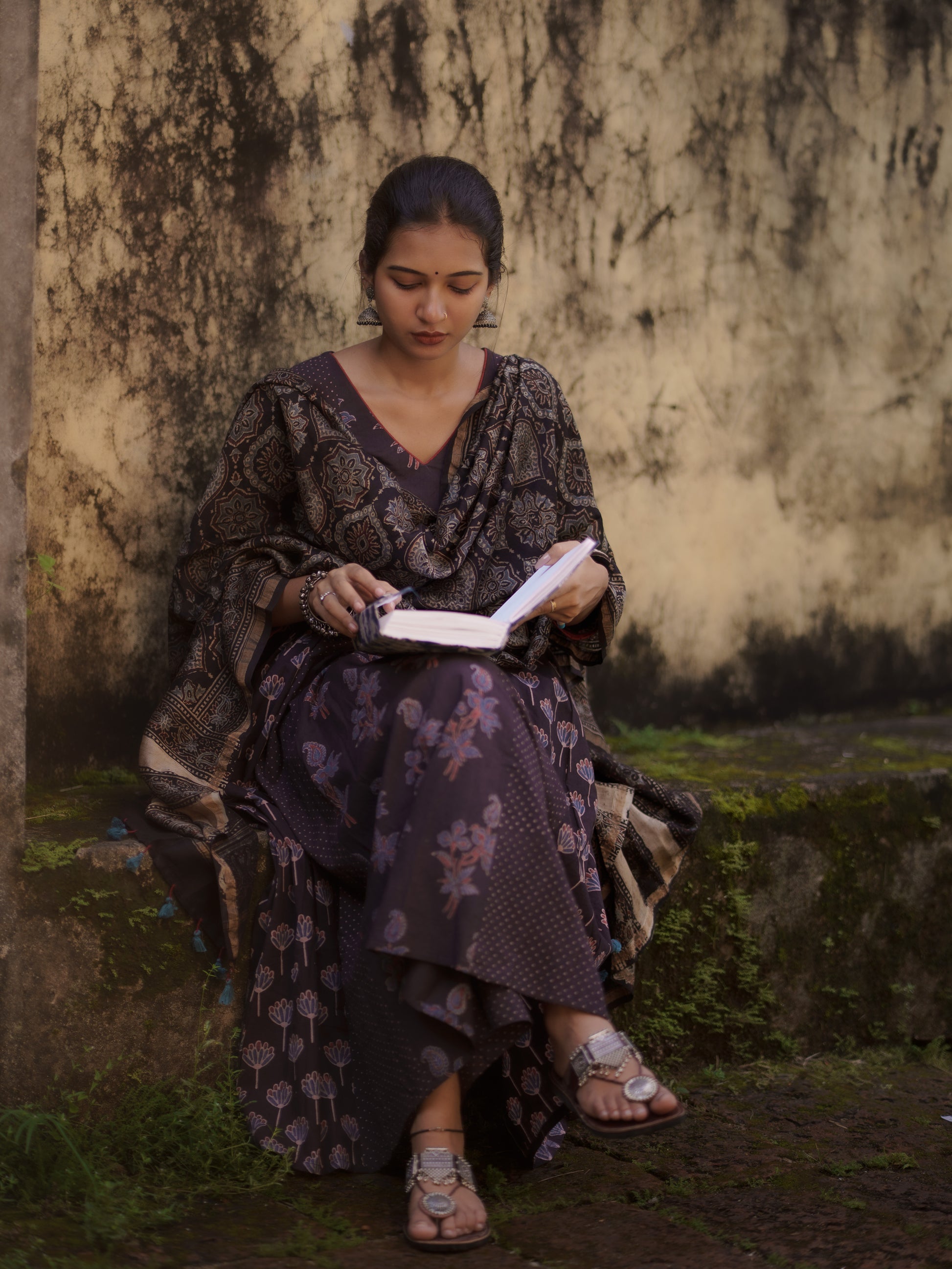 Mannat Black Ajrakh Chanderi Silk Dupatta